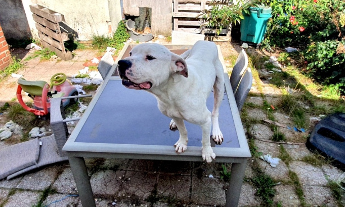 « D’une maigreur inquiétante », le Dogue argentin blanc de 5 ans n’avait rien pour s’abriter et vivait parmi les détritus, dans une courette. Selon l’enquêteur de la Fondation 30 Millions d’Amis qui a constaté les conditions dans lesquelles vivait l’animal, la cour était « insalubre » avec « pleine de détritus ». « Selon l’enquête de voisinage, le maître ne passait qu’une à deux fois par jour. Un chien mérite quand même un minimum de confort, rappelle le bénévole. Et surtout de quoi boire et manger régulièrement ! » Le vétérinaire qui a examiné l'animal a constaté « un état général insatisfaisant probablement dû à une alimentation et une activité physique inadaptée ». En outre, les blessures présentées sont « consécutives à une absence d'hygiène et d'entretien ».