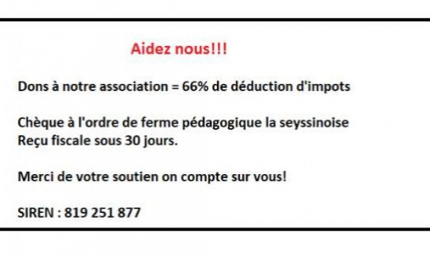 Chèque a l'ordre de : ferme pédagogique la Seyssinoise