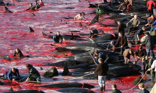 Grindadráp or grind is a traditional hunt practiced in the Faroe Islands (Denmark). It has been going on since about the 1580s