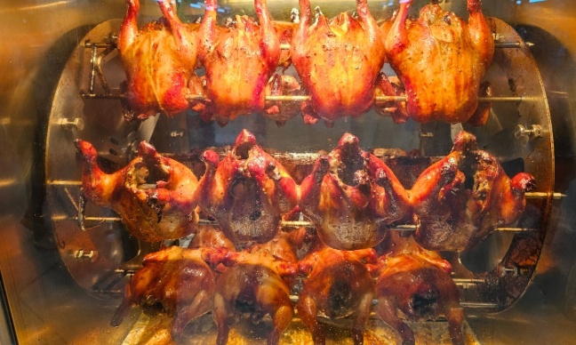Que dire des rôtisseries de pauvres cadavres de poulets embrochés (idem pour d'autres à l'unité tournoyant à ras du sol dans les "fêtes du boeuf etc....") tournant inexorablement tristement en rond, des grands camions aménagés ambulants sur nos places publiques de marchés ou boucheries ?