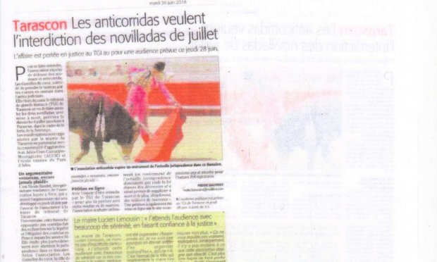 Par jugement au fond rendu à juge unique par la juge Aude VENTURINIt le 5 juillet 2018, le T.G.I. de TARASCON nous a déboutés de nos demandes ( et condamnés à payer 4.000 Euros aux organisateurs de ces novilladas) et, en conséquence, 10 jeunes malheureux taureaux de moins de 3 ans, des "novillos" ont été TORTURES A MORT dans des souffrances terribles, le 8 JUILLET 2018 dans les arènes de TARASCON,et ce ILLEGALEMENT, sous les applaudissements et les vivas des aficionados !