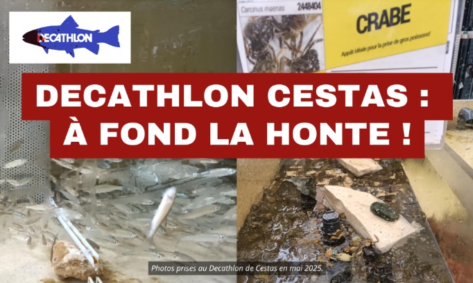 Comment peut-on, en 2025, continuer à vendre des êtres sensibles destinés à être torturés comme le fait le Decathlon de Cestas ? Pour ce qu’on appelle la pêche au vif, une pratique d’une extrême cruauté, condamnée par de plus en plus de citoyens et citoyennes, de politiques et de scientifiques, le magasin commercialise poissons et crabes vivants.