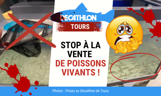 Dans le rayon pêche du Decathlon de Tours, j’ai eu la désagréable surprise de découvrir un aquarium avec des poissons vivants ! Les poissons sont des êtres dotés de sensibilité, il est inacceptable de voir qu’une grande enseigne de sport les vendre comme de vulgaires choses !