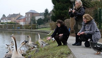 Monsieur Hannecart , maire de Berlaimont, a décidé d'expulser les oies de Guinée des berges de la Sambre.