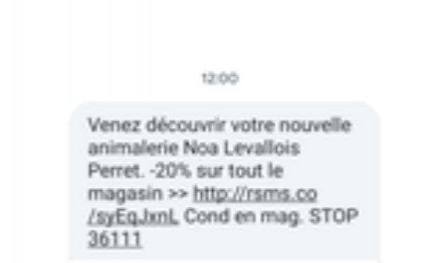 Voici une des méthodes de vente chez NOA, une promotion de 20 % reçue directement sur mon portable le vendredi 9 juillet 2021, pour fidéliser leur clientèle et convaincre de nouveaux clients à venir dans leur nouveau magasin.