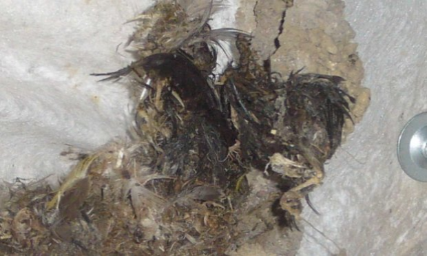 Sur la photo (postée également sur facebook) on voit ce que je redoutait depuis le début de ce combat. Triste et en colère je suis, car une hirondelle est morte sans doute tuée dans son nid. Vous pouvez zoomer sur la photo, moi je viens de le faire et je suis... comment dire, je suis dégoutté par ces personnes qui ont commis cet acte barbare.
