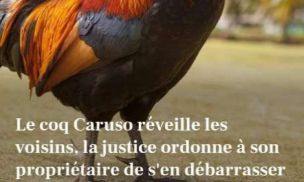En effet, le coq CARUSO n'a plus le droit d'être près d'un monsieur de 74 ans à cause d'une plainte de ses voisins en Haute Savoie . ( Décision de justice).