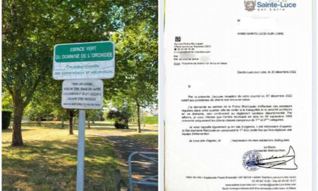 sur la photo où il y a le panneau, il est clairement spécifié la tenue en laisse de tous les chiens et de plus, pour les chiens catégorisés, ces derniers doivent être muselés !