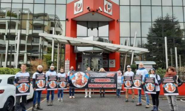 Notre association était présente ce samedi 1er avril devant le siège du groupe Provencia qui possède une 40aine de Carrefour pour lui demander de cesser de commercialiser des crustacés vivants.