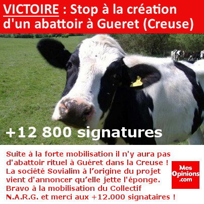 Stop à la création d'un abattoir rituel à Gueret (Creuse )