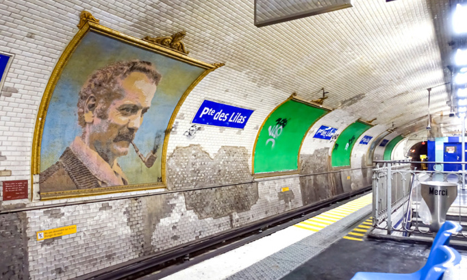 Dans le cadre du prolongement de la LIGNE 11 du métro, une réfection des murs de la station Porte des LILAS est en cours. Cependant, les 3 mosaïquesreprésentantGeorges BRASSENSet des bouquets de Lilas sur les quais du métro, direction Chatelet sont en DANGER de disparition.