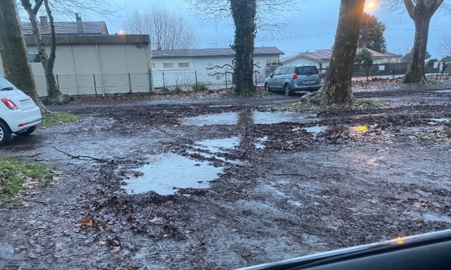 Nous, parents des élèves et habitants de la commune, demandons à la mairie de prendre en charge le réaménagement du parking de l’école de Virelade.