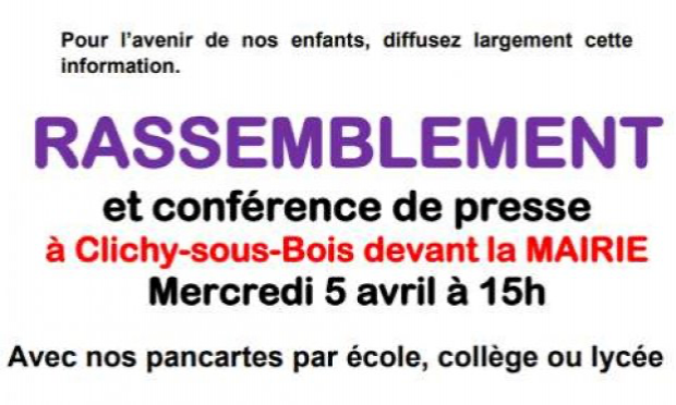 En tant que signataire de cette pétition, vous êtes invité(e) à participer au RASSEMBLEMENT à CLICHY-SOUS-BOIS devant la MAIRIE, mercredi 5 avril à 15h.