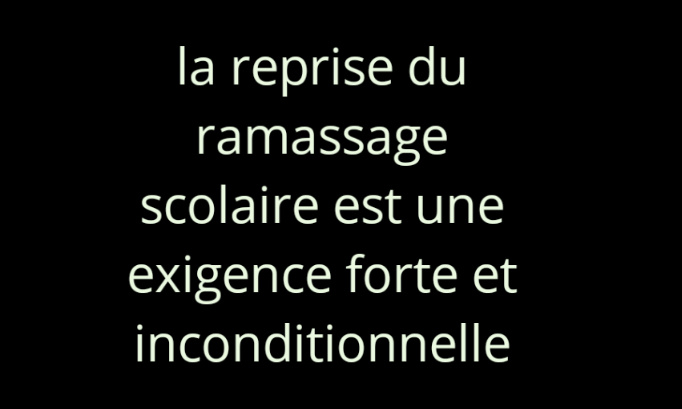 La reprise du ramassage scolaire dès le 4 Janvier 2021 est une exigence forte et inconditionnelle.