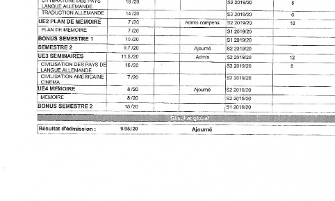Ma note finale au master 2 à l’Université de Boulogne-sur-Mer est de 9,95 mais ils ont tout de même refusé de me le donner !!!!! Je ne vous cache pas ma profonde déception…