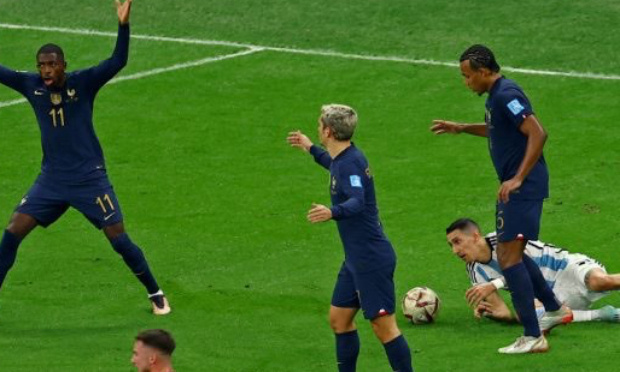Durant Cette finale de Coupe du monde, L’argentin Di Maria Entre dans la Surface de Réparation, juste derrière lui Ousmane Dembélé, Di Maria Profite de ça pour tomber volontairement pour faire croire à l’arbitre que Ousmane Dembélé lui a fait un croche pâte (preuve un image)