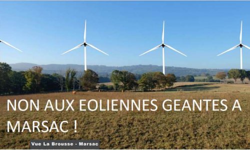 Le village de Marsac possède déjà des installations d'énergie renouvelable ( hydroélectricité, panneaux photovoltaïque). Pourquoi y imposer des installations massives et industrielles ? (5 éoliennes de probablement plus de 150m en bout de pales)