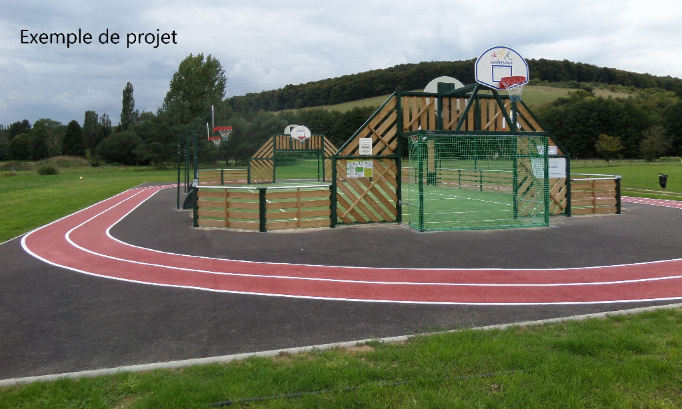 - Ce projet serait composé d'un plateau multi sports en pelouse synthétique clos par un bardage, entouré d'une piste de course en résine colorée.