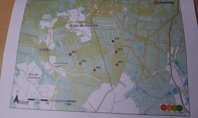 La société Luminus a pour projet d'installer un parc éolien de six éoliennes à Brûly-de-Pesche (plus précisément le long de la N964 juste à côté du village), si nous n'agissons pas il est quasiment certain que le projet de Luminus verra le jour. Alors bougeons-nous !
