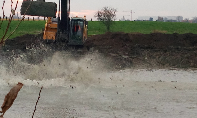 Comblement du bras mort avec des boues et terres toxiques, non recyclées du bras mort Comines-Warneton (Vert digue)