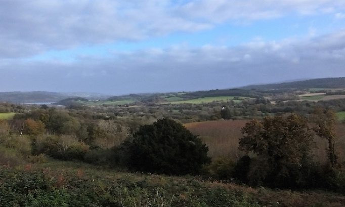 Concernant la photo jointe ici: l'antenne de 37 mètres sera implantée à mi-hauteur de la photo,devant le Menez Hom que l'on devine à droite.