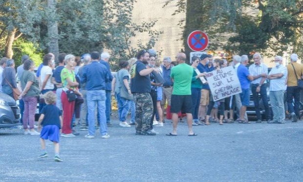 Une centaine de personnes se sont retrouvées devant les locaux de la Communauté de communes Saone Dombes Vallée pour s'opposer au projet d'enrobé sur le chemin de halage.