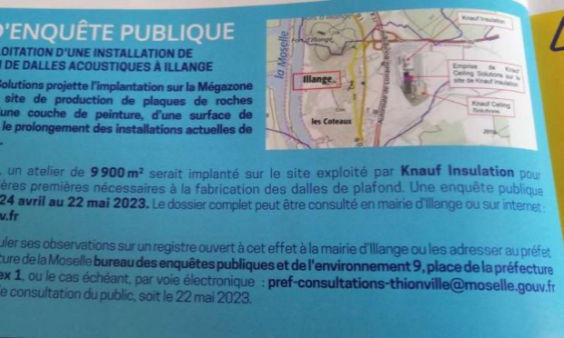 Email pour donner son avis concernant l'implantation d'une 2° usine Knauf à Illange