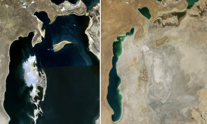 La mer d'Aral était le quatrième plus grand lac du monde, et dans les années 60 et jusqu'aux années 80, c'était un village de pêcheurs prospère avec une conserverie qui traitait plusieurs milliers de tonnes de poisson par an. La mer d`Aral est presque inexistant, et parce qu'il est devenu tellement plus petit, la teneur en sel signifie que toutes les espèces animales ont disparu.