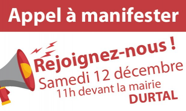 Nous vous donnons rendez-vous à 11h devant la Mairie de Durtal pour un rassemblement pacifique.