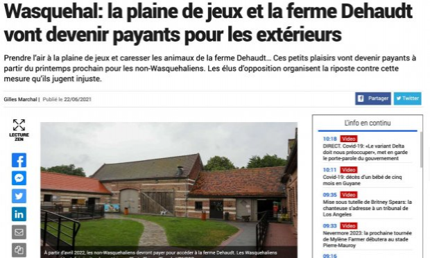 La Voix Du Nord évoque notre pétition et notre rassemblement dans le journal d'aujourd'hui : https://www.lavoixdunord.fr/1032964/article/2021-06-22/wasquehal-la-plaine-de-jeux-et-la-ferme-dehaudt-vont-devenir-payants-pour-les