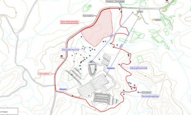 Ci-dessous, le plan, à terme, du CET et de l'unité thermique (hachurée en rouge)