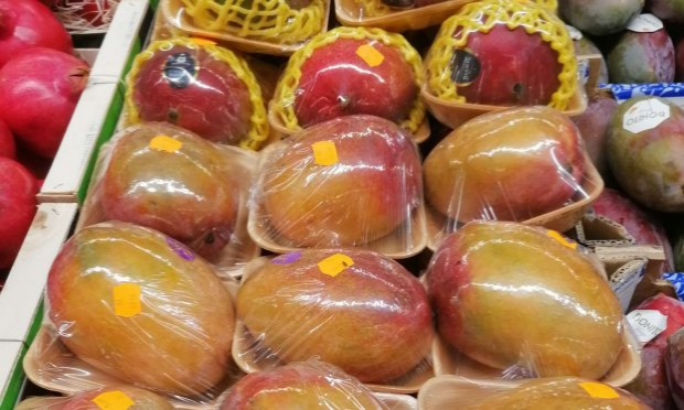 Des mangues (mais aussi des avocats et des poivrons) emballées dans du plastique...