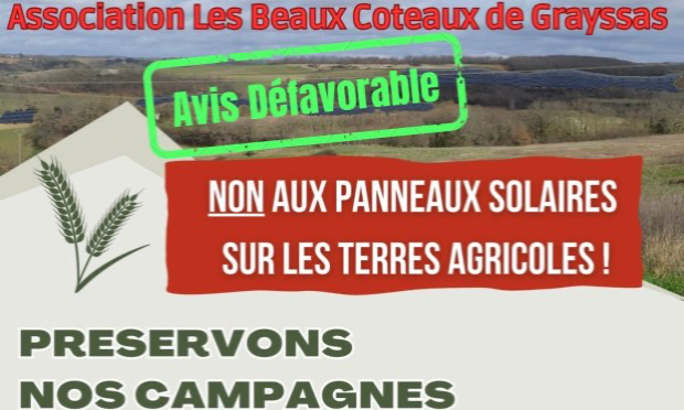Prenant en compte tant les aspects positifs que les aspects négatifs et les considérations qui précèdent, j’émets un AVIS DÉFAVORABLE à la demande de permis de construire pour un projet de création d’une centrale photovoltaïque sur la commune de Grayssas par la société REDEN.