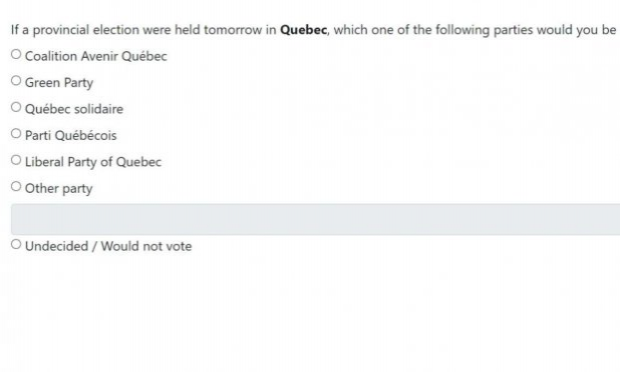 Faisons savoir à Maru Voice (anciennement Angus Reid Forum) qu'oublier d'inclure le PCQ alors que le parti fait entre 10 et 15% à la grandeur du Québec et environ 25% dans les régions de Québec-Beauce-Appalaches relève d'un amateurisme et d'une incompétence crasse ou encore d'un je-m'en-foutisme de la politique québecoise parce que "who care?", on est une firme de Toronto et probablement qu'on reçoit des chèques de la CAQ pour se fermer la trappe.
