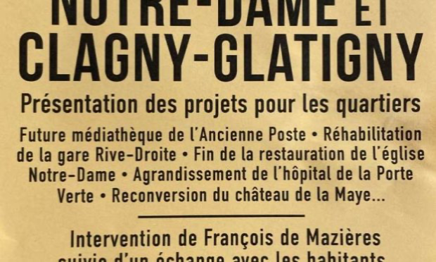 Nous avons été informés de la tenue d'une réunion publique mardi 8 avril à 19h Salle Marcelle Tassencourt, ayant pour objet la "présentation des projets pour les quartiers" Notre-Dame et Clagny-Glatigny, avec l'intervention du Maire François de Mazières suivie d'un échange avec les habitants en présence des Conseils de quartier (Réunion publique sur l'avenir des quartiers Notre-Dame et Clagny-Glatigny | Ville de Versailles).