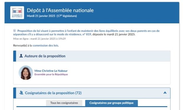 Une mobilisation citoyenne massive pour défendre les droits des enfants. Depuis le dépôt de la proposition de loi n°819 par la députée Christine Le Nabour en janvier 2025, un élan citoyen sans précédent s’est levé pour réclamer une avancée concrète en matière d’égalité parentale et de respect des droits de l’enfant. Relayée par de nombreux collectifs et associations, la PPL 819 a mobilisé des milliers de citoyens, convaincus qu’il est temps de garantir à chaque enfant le droit fondamental à une résidence équilibrée après séparation.