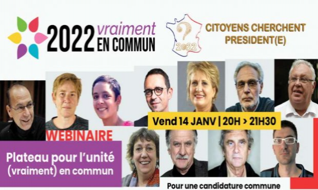 Grâce à votre participation à la pétition, nous avons pris une place dans le paysage des citoyens engagés et pouvons ainsi porter vos attentes dans les débats. Citoyens cherchent président participe au Webinaire pour l'unité de la gauche ce vendredi 15 janvier 2022 à 20h :