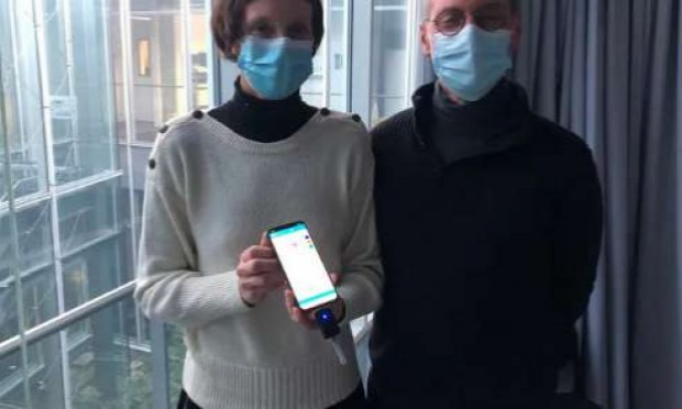 - avec son smartphone, et un petit dispositif qui devrait être donné à chacun