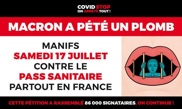 Samedi 17 juillet, des rassemblements de contestations sont organisés partout en France contre le pass sanitaire. Allons-y nombreux, pacifiques mais déterminés. Nous ne voulons pas de cette société.