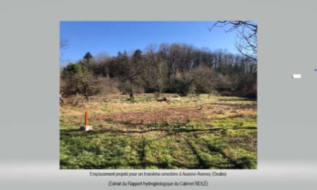 Nous sommes un Collectif, "Les Morts taiseux", qui s’est constitué au mi-temps de l’année 2023 quand nous avons constaté que le Grand Besançon Métropole (GBM) poursuivait le projet aberrant et stupide de création d’un troisième cimetière à Avanne-Aveney sur une parcelle située en pleine Zone humide, chemin du Vignier, au lieu-dit "Derrière Chaillot" qui avait été décidé plus de 10 ans auparavant par un maire élu de mars 1997 à mars 2014 et que les élus suivants n’ont jamais remis en question, plus par résignation que par conviction.