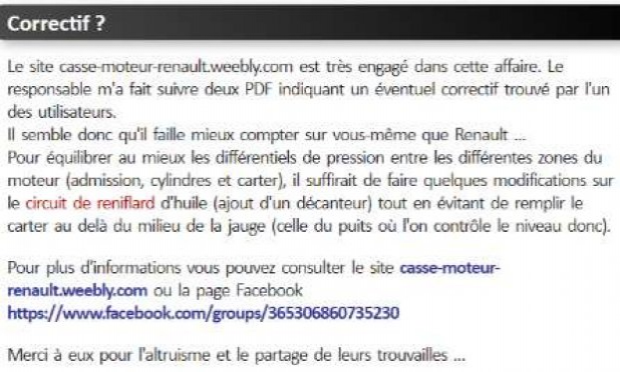 Las du déni des constructeurs dans ce dossier, les victimes ont mis en place une idée permettant de fiabiliser ce moteur.