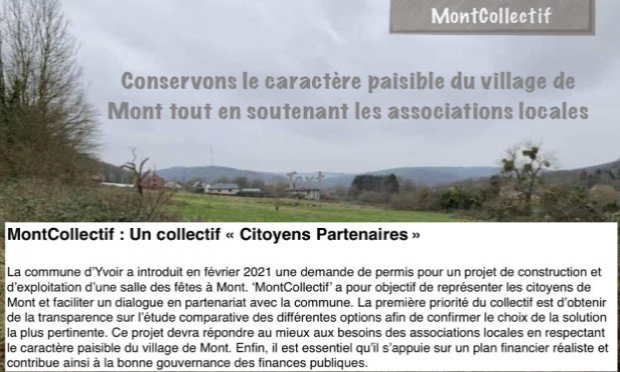 MontCollectif a été créé par un groupe de citoyens Montois inquiets par le projet de construction et d’exploitation d’une salle des fêtes à Mont.