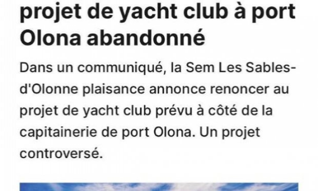 En effet, si la version initiale du projet est bel et bien abandonnée, son principal promoteur continue, pour ses prochains "projets", de faire une ségrégation entre les personnes dignes d'être consultées (les riverains et les "acteurs du nautisme".) et les autres .... Or, tous les habitants de la Chaume et des Sables sont bel et bien concernés, s'agissant de constructions, à des fins mercantiles, d'immeubles d'une certaine ampleur.