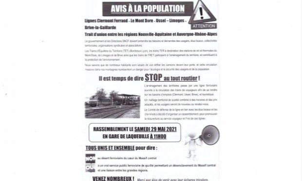 Rendez-vous samedi 29 mai 2021 Gare de Laqueuille à 11h.