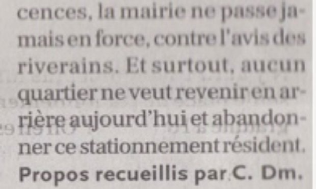 " la mairie ne passe jamais en force contre l'avis des riverains " La Dépêche 9 mars 2024, le quartier Bonnefoy deviendra payant !
