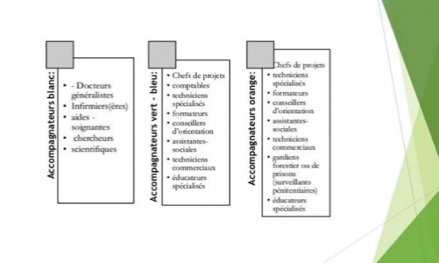 Tandis que les accompagnateurs de catégorie bleu et orange : doivent prévenir maltraitance, tous dangers imminents par le biais des nouveaux métiers écologiques dédiés à la sécurité, secours et risques majeurs.