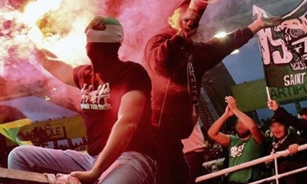 L'ambiance fait partie du foot. Un supporter regarde un spectacle et un ultras y participe.