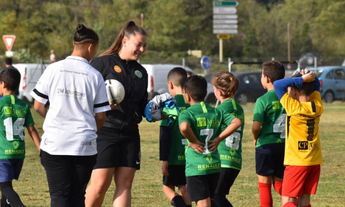 Elle prend de son temps pour que les enfants puissent prendre du plaisir à faire du foot.